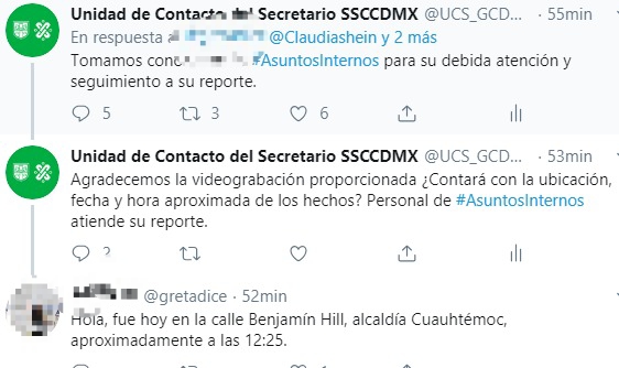 Mediante un boletín, la dependencia indicó que tras establecer contacto con el denunciante, quien informó que los hechos ocurrieron aproximadamente a las 12:25 horas en la calle Benjamín Hill, colonia Hipódromo Condesa, el personal de la Dirección General de Asuntos Internos inició de inmediato la carpeta de investigación administrativa correspondiente para que los elementos involucrados declaren a la brevedad sobre este hecho.
