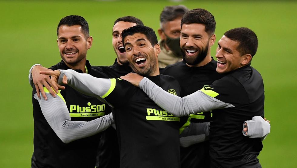 En el entrenamiento de este martes, los jugadores del Atlético se vio un gran ambiente entre los rojiblancos, después del triunfo logrado este pasado fin de semana ante el Celta, que ha dado confianza a los colchoneros.