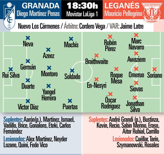 Granada y Leganés se enfrentan este sábado en el Nuevo Los Cármenes en un choque al que los andaluces llegan en un gran momento de forma y con el objetivo de lograr un nuevo triunfo para asentarse en la zona alta de la tabla y los madrileños, en busca de su primera victoria del curso.