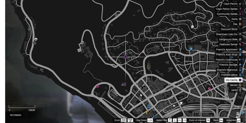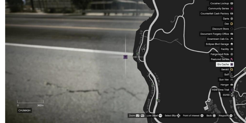 El muelle histórico familiar Chumash se encuentra al costado del mapa de Los Santos, pero tiene Muchos tesoros escondidos, incluidos los cachés de G algunos díasCuatro de las ubicaciones están alrededor del edificio al final del muelle, lo que hace que esta ubicación sea mucho más fácil que las otras, ya que se puede cubrir en un abrir y cerrar de ojos. La otra área posible está en los bancos a mitad del muelle.