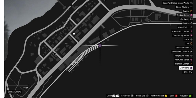 Fuera de la terminal ferroviaria de Grapeseed, hay un montón de equipos agrícolas donde se pueden ocultar los alijos. Esto incluye junto a la gran pieza de equipo circular roja. Se pueden encontrar dos en el cobertizo del ferrocarril, otro es un remolque de carga amarillo y el último en el campo junto al sistema de suministro de agua. La introducción de los alijos de G es una de las últimas actualizaciones del juego, que sigue GTA Online Vivo para los jugadores.