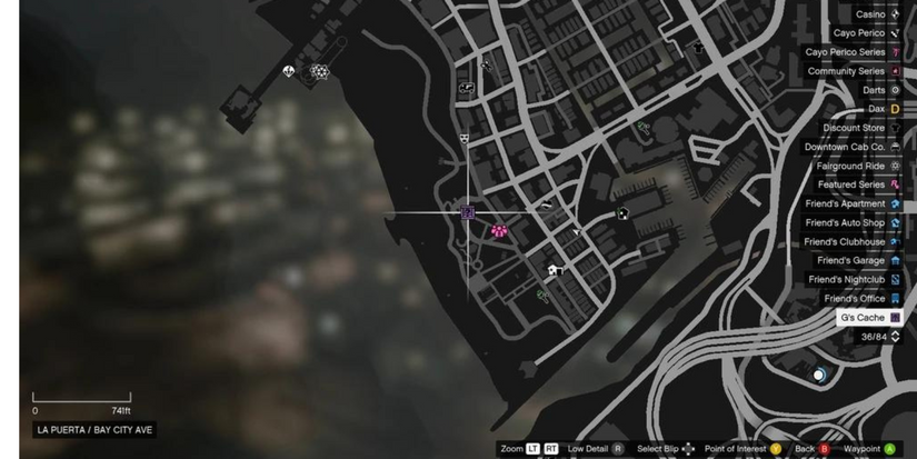 Con un sinfín de cosas aún por encontrar en GTA Online Incluso en las búsquedas del tesoro, los jugadores siguen regresando al juego. Otra pequeña ubicación donde se pueden ocultar los escondites de G es Decker Park, en el área principal de la ciudad. Tres de los posibles lugares donde aparecen están en los diferentes bancos que hay alrededor del parque. Otro está en la parte superior de la rampa de patinaje, y la ubicación final está contra el poste azul en el norte del parque.