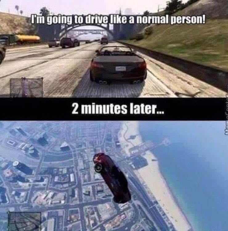 Mientras conducen por la autopista o las calles de Los Santos, la mayoría de los jugadores han querido intentar conducir normalmente durante un período de tiempo. Mantenerse dentro del carril, evitar chocar con otros autos y respetar los semáforos y los límites de velocidad es tentador pero, eventualmente, no es suficiente para mantener a los jugadores fuera de la diversión de hacer las acrobacias y persecuciones automovilísticas más locas.