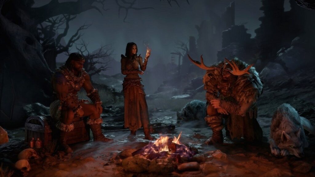 Nuevamente, tendrías que haber prestado atención a la revelación inicial para descubrir de qué se están burlando aquí, pero si no lo hiciste, lo vimos por ti. La “escena de la fogata” en cuestión fue una en la que vimos tres de las cinco clases totales que aparecerán en el juego: El Bárbaro, Hechicera y Druida. Los tres se reunieron alrededor de una fogata con un enfoque especial dedicado a cada uno y sus poderes más tarde, después de presentar a los jugadores por primera vez al trío.