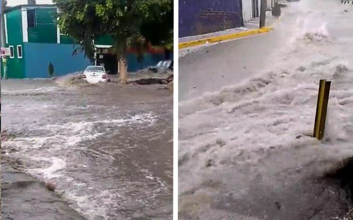 @JesusMartinMx Esto está ocurriendo en este momento por la fuerte lluvia en San Carlos, municipio de Ecatepec pic.twitter.com/0nLGuKlFkt