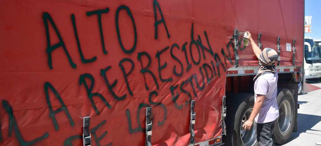 “No entendemos porqué nos agredió la policía, si nosotros a lo único que venimos es a informar. Fue un ataque cobarde. Yo no entiendo que ataquen a una mamá cuya única arma es su manta con la fotografía de su hijo desaparecido”, consideraron los padres de los estudiantes.
