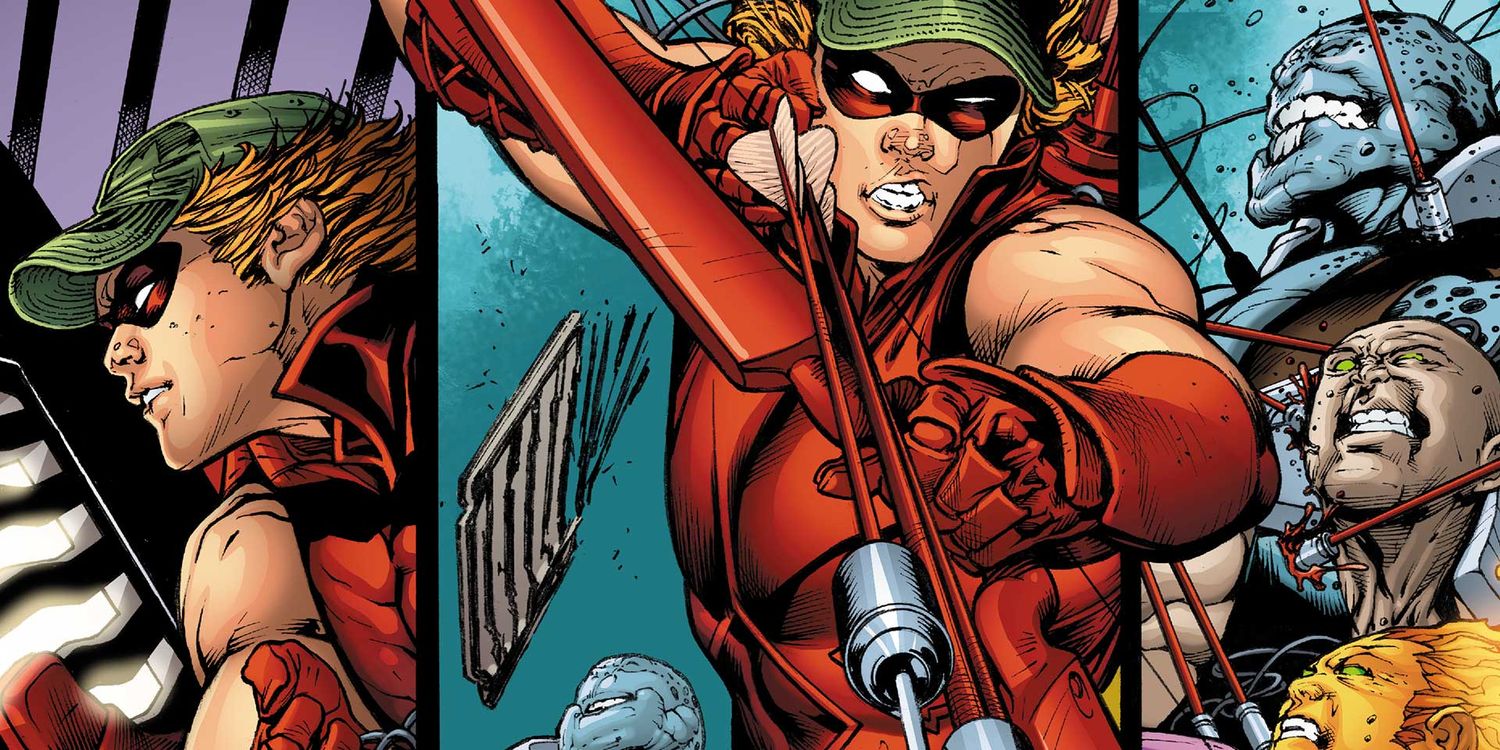 Vista previa de páginas para Flecha verde #1 por Joshua Williamson y Sean Izaakse ven a Oliver Queen lavarse en una isla misteriosa poco después de su aparente muerte durante Crisis oscura en tierras infinitas. Mientras Green Arrow maldice su desgracia de quedar abandonado en otra isla, Oliver se da cuenta de que esta no es una isla ordinaria y que su paisaje es bastante extraño. El héroe comienza a mirar hacia atrás en su vida, pensando en la persona que solía ser y cuánto ha cambiado desde sus orígenes. En otra parte, la familia de Oliver sigue su rastro buscándolo. Mientras el equipo viaja a Ciudad Gótica para buscar una pista, Green Arrow presenta a cada miembro. Cuando habla de Roy Harper, también conocido como Arsenal, Green Arrow llama explícitamente a su antiguo compañero “el mejor tirador del mundo“, jactándose un poco ya que él fue quien entrenó a Roy.