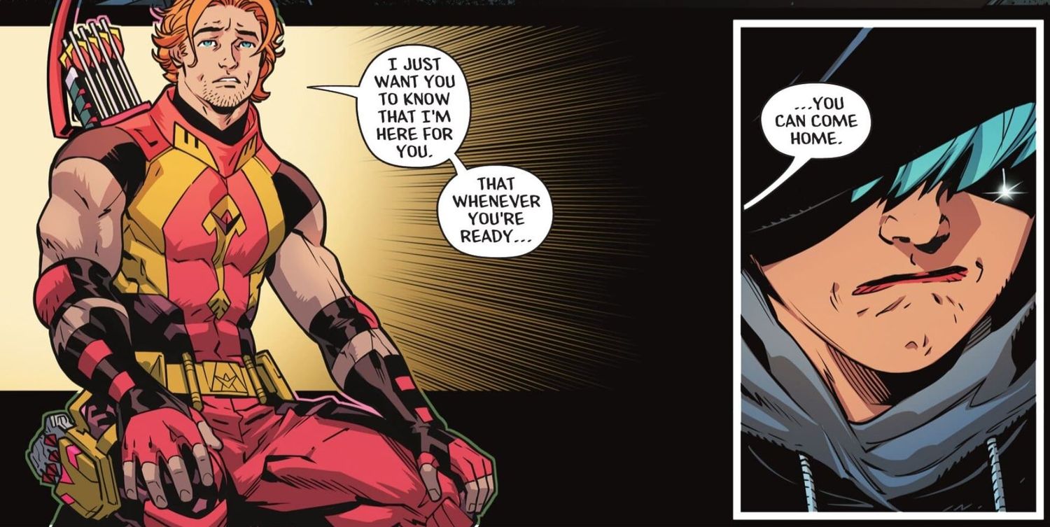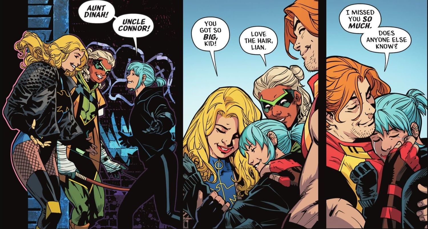 No importa cómo Lian volvió a la vida, Roy Harper claramente está feliz de volver a ver a su hijo. La muerte de Lian aplastó a Roy, enviándolo a una espiral de ira, depresión y adicción a las drogas. Pero el Arsenal buscó ayuda y se abrió camino de regreso a la normalidad. Sin embargo, todavía le faltaba algo, especialmente una vez que la línea de tiempo se estableció y los héroes de DC comenzaron a recordar sus vidas anteriores. Roy ha estado sufriendo durante mucho tiempo, y esta reunión puede ser lo que ayude al Arsenal a seguir adelante con su vida.