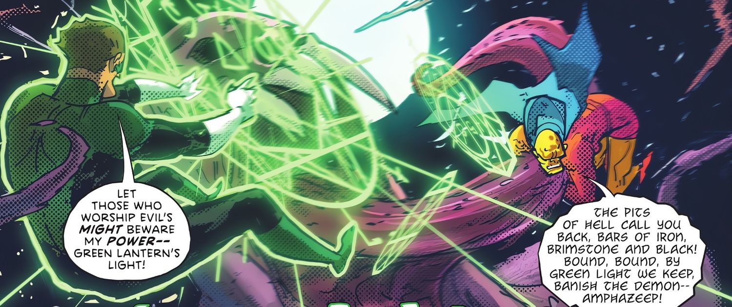 El anillo de Linterna Verde en realidad tiene una conexión sorprendentemente profunda con las fuerzas mágicas. Antes de que los Guardianes del Universo crearan el Green Lantern Corps, primero experimentaron para poner orden en el universo sometiendo y conteniendo sus elementos mágicos dentro de un artefacto llamado Starheart; este artefacto y su poder mágico terminaron creando al primer Linterna Verde de la Tierra, Alan Scott. Este conflicto entre los Guardianes y la magia ha demostrado ser un importante punto de discordia para el Cuerpo y el impulso para gran parte del conflicto en 2021. Linterna Verde series de Geoffrey Thorne, Dexter Soy, Tom Raney y más.