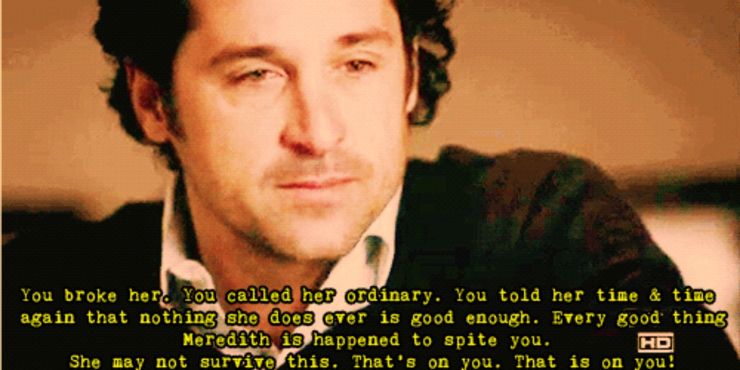En lugar de actuar como un empleado del hospital en el que se encuentra, actúa como un novio protector y arremete contra Ellis Gray, diciéndole que ella es la razón de todos los problemas de Meredith y la razón por la que podría no sobrevivir. Este discurso, aunque tiene buenas intenciones de defender a su chica, no le hace ningún favor a Ellis, y ella fallece más tarde ese mismo día. También es un cambio de carrera arriesgado, ya que es un médico establecido y podría ser castigado por sus malos modales al lado de la cama.