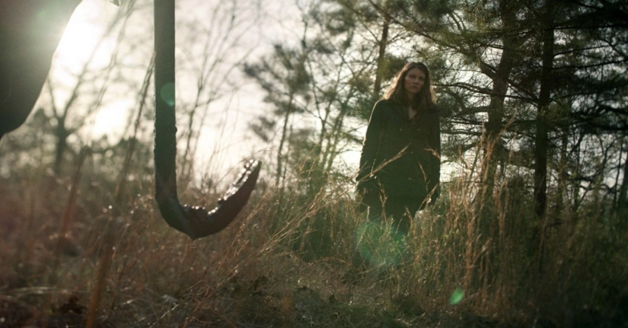 “Hunted” termina en un campo en las afueras de una iglesia quemada, donde Negan saca a un caminante que se tambalea con un movimiento de su palanca. Maggie mira la palanca que gotea sangre, recordando el bate de béisbol sangrante que Negan usa para golpear hasta la muerte a Glenn (Steven Yeun) en el episodio de la temporada 7 “El día vendrá cuando tú no estarás”.