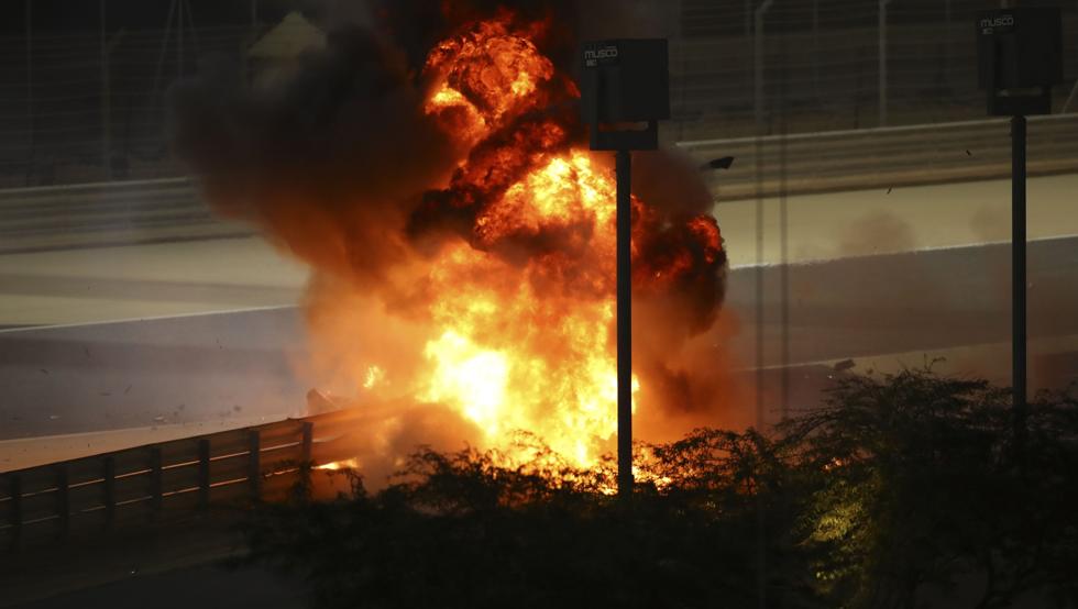 El piloto de 34 años, de origen suizo, en la primera vuelta del GP de Bahrein de Fórmula 1, se chocó de forma frontal y muy fuerte con las protecciones del inicio de la recta tras la curva 3 del Circuito de Sakhir. Su coche, en milésimas de segundo, se incendió de forma tremenda. Una explosión de fuego inmediata impedía que el monoplaza se viera entre las llamas y ello hizo que la FIA no mostrara más imágenes del incidente ni de Grosjean hasta que se confirmara que se encontraba bien. Por suerte, tras unos segundos interminables de incertidumbre, la realización de la FIA mostró al piloto de Haas siendo atendido en el coche médico, visiblemente aturdido. Romain había logrado salir del coche de forma rápida y se encontraba bien, aunque algo mareado.