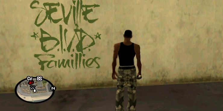 Una vez el “Etiquetado de césped“misión secundaria en San Andreas se completa, los jugadores podrán encubrir las etiquetas de pandillas mientras navegan libremente. También habrá una lata de aerosol disponible en la casa de Johnson después de que concluya la misión. Los jugadores pueden usar la lata de aerosol para pintar sobre las 94 etiquetas de pandillas restantes que se encuentran en paredes, edificios y detrás del follaje alrededor de Los Santos.