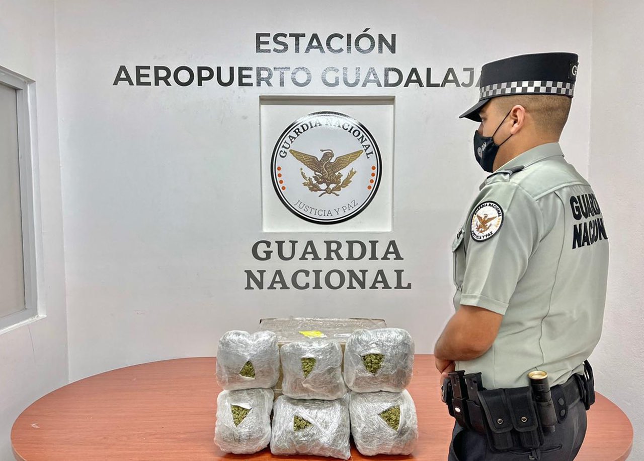 La Guardia Nacional también aseguró paquetes que, aparentemente, contenían mariguana y pretendía ser enviados a través de un servicio de paquetería en el estado de Jalisco.