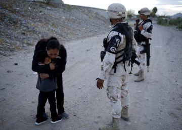 Lety Perez, inmigrante guatemalteca, abaraza a su hijo ante los guardias fronterizos de México en Ciudad Juarez. REUTERS