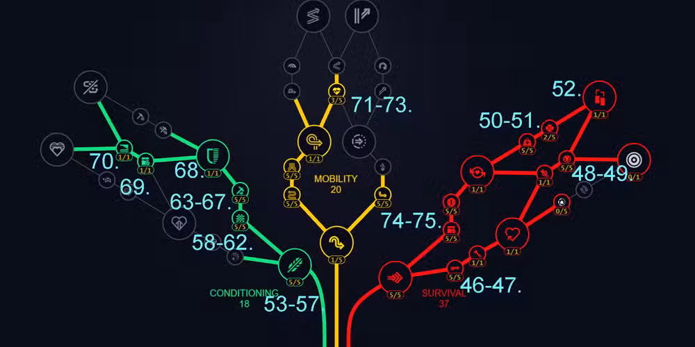 Al aumentar drásticamente tu capacidad de supervivencia frente a ARC y otros asaltantes, querrás usar inmediatamente tus próximos puntos de habilidad para adquirir Un poco más y Brazos de carga. Con recursos adicionales para irrumpir en busca de botín y reducir el peso de tus armas de fuego, ambas habilidades de acondicionamiento son excelentes características de calidad de vida, incluso a estas alturas del juego.
