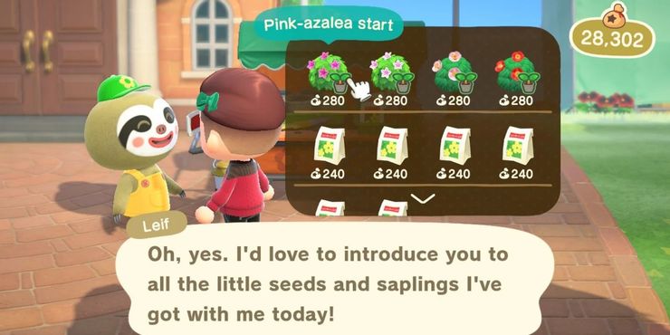 Los arbustos se pueden comprar en Leif como “comienzos”, que tardan 3 días en crecer después de ser plantados. Leif es uno de varios NPC viajeros que aparecen en la isla al azar para vender sus mercancías, y Animal Crossing’s El especialista en jardinería trae una reserva de arbustos, flores y productos agrícolas a las islas de los jugadores cuando llega. Él traerá dos tipos diferentes de arbustos con él cada vez que visite, y los jugadores también podrán elegir entre las combinaciones de colores disponibles. Los arbustos cuestan 280 Bells para comprar y vender por 70 Bells en Nook’s Cranny, y los jugadores pueden comprarlos como individuales o en un lote de 5. Solo un tipo de arbusto estará en temporada a la vez, y Leif siempre se venderá. ese tipo cuando viene a la ciudad junto con otro tipo que está fuera de temporada.