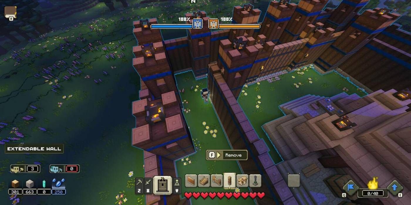 Otra estrategia que los jugadores pueden considerar sería hacer una base con paredes gruesas con Archer Towers a lo largo del perímetrocon una capa de pared adicional en el interior. Esto da una fuerte defensa exterior con mobs y Golems esperando dentro de la primera capa para sacar a los rezagados o reforzar las secciones rotas de la pared exterior. Un perímetro más amplio podría ser genial en PvE cuando se une a otro jugador en Leyendas de Minecraft‘ Multijugador cooperativo.
