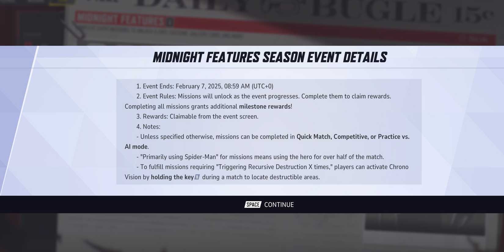 Sin embargo, asegúrate de estar atento a las misiones del evento Funciones de medianoche, ya que este evento no dura tanto como la temporada y querrás recolectar estas recompensas antes de que desaparezcan para siempre. Rivales de Marvel.