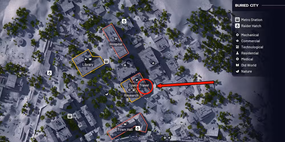 Dónde encontrar el área de viajes espaciales con barricadas en la ciudad enterrada