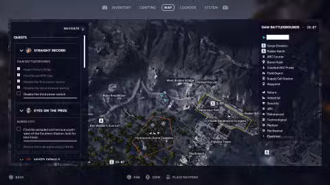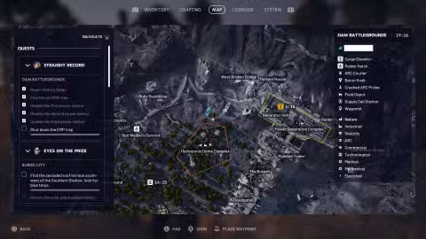 Tu primer objetivo en “Straight Record” es “Llegar a la cresta de la victoria” en Dam Battlegrounds. Esto puede ser complicado de encontrar en el mapa porque, a menos que estés alejado por completo, la etiqueta Victory Ridge no aparece. Victory Ridge es el extremo norte de Dam Battlegrounds.que abarca sububicaciones como West Broken Bridge y Ruby Residence.