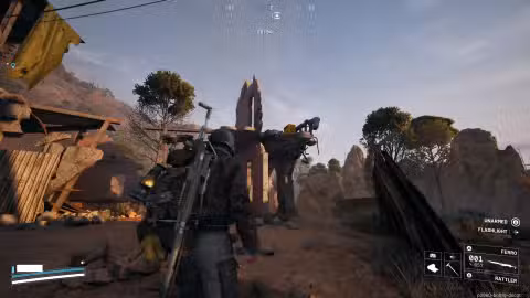 El segundo interruptor de encendido también es visible desde la trampa EMP, al este en unos escombros. tendrás que subir a las ruinas para acceder a él. Primero, sube a una caja cercana y luego sube al edificio destruido. Luego, salta el pequeño espacio, atraviesa una puerta e interactúa con el interruptor de encendido.