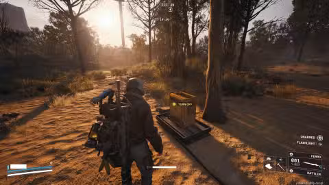 El tercer y último interruptor de encendido está cuesta abajo, hasta el al sur de la trampa EMPhacia el Complejo Domo Hidropónico. Simplemente está sentado en el suelo cerca de un árbol. Después de apagar el interruptor de alimentación final, Regresa a la trampa EMP e interactúa con ella nuevamente..