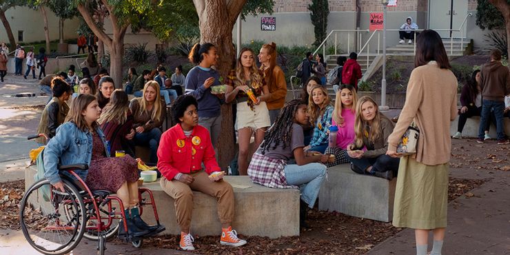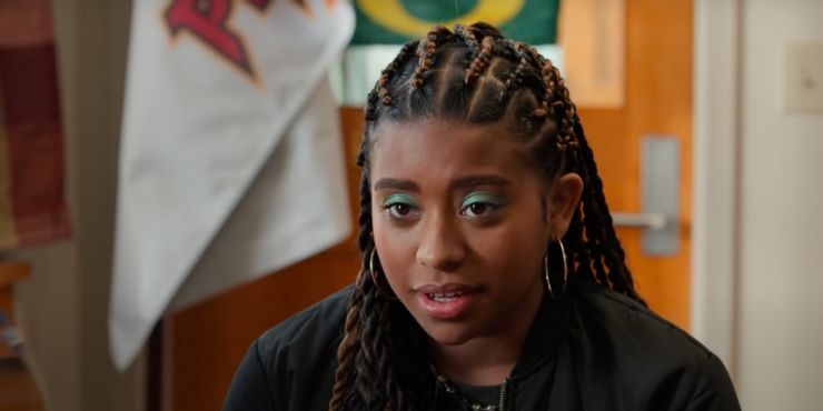 Josie Totah como CJ: Una estudiante transgénero que quiere que sus compañeros usen su nuevo nombre. Josie Totah interpretó a Stuart Wooten en Jessie, Myron Muskovitz en Alegría, y actualmente aparece como Lexi Haddad-DeFabrizio en el Salvado por la campana reiniciar.