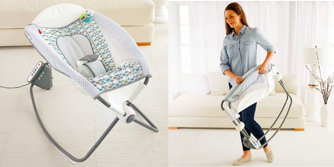 Esta es una de las pocas cosas que compramos, nos enamoramos y luego compramos. otro. Cuando la cuna está en otra habitación y solo necesitas un lugar para que el bebé se recueste y se acueste por unos pocos, el juego Rock n´´ (~ $ 60) es fantástico. Puede balancear suavemente al bebé y reproducir un ruido blanco (pero, a diferencia del Snoo, es constante, no solo cuando el bebé está inquieto). Es ideal para casas / apartamentos más pequeños, con un tamaño relativamente pequeño y un diseño superligero que se puede plegar cuando no está en uso.