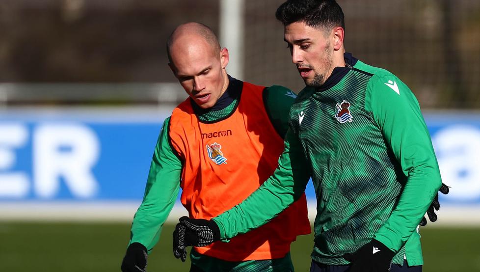 Merquelanz brillaban con luz propia en el Mirandés. Ambos eran titulares indiscutibles y su peso en uno de los equipos de moda del fútbol español era incuestionable. Su regreso a la Real en verano tras su cesión se daba por hecho y sus incorporaciones eran vistas como dos refuerzos importantes de cara a una temporada que se presentaba plagada de partidos. Sin embargo, 365 días después el azpeitiarra y el irundarra viven su momento más bajo en la Real, con un protagonismo que ha decrecido notablemente, sobre todo ahora que la Liga ha quedado como la única competición en la que sigue inmerso el club txuri urdin.