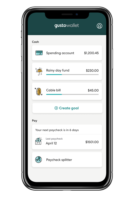 La más interesante aquí es una herramienta que la compañía llama Gusto Wallet. Es una aplicación y colección de productos para empleados pagados a través de Gusto que básicamente actúa como un mini banco y un monitor de salud financiera. Ofrece una cuenta de efectivo que devenga intereses (llamada, apropiadamente, Cuentas de efectivo) que también puede desviar una pequeña porción de cada cheque de pago a los ahorros de un usuario, similar a productos como Acorns y Digit. El efectivo almacenado en la cuenta genera un interés del 0.34% hoy, y también puede obtener una tarjeta de débito Gusto para gastarlo.