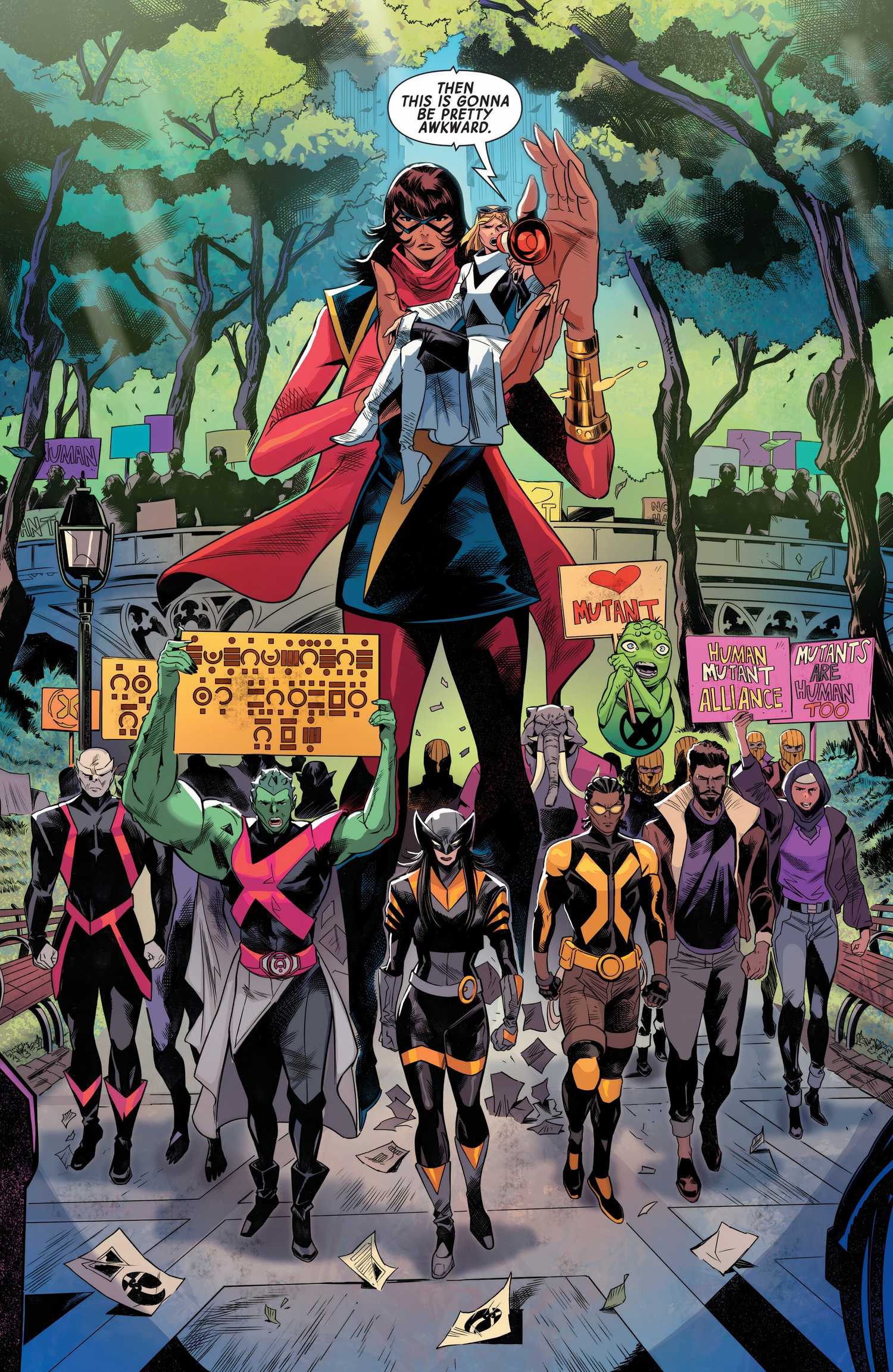 Siguiendo el Caída de Xescritores como Jed MacKay, Gail Simone y especialmente Collin Kelly y Jackson Lanzing han devolvió a los X-Men a series de menor escala, permitiendo historias más íntimas – como en NYX #5 de Kelly, Lanzing, Francesco Mortarino, Elisabetta D’Amico, Raúl Angulo y Joe Sabino, que presenta un enfrentamiento entre humanos y mutantes en una protesta.