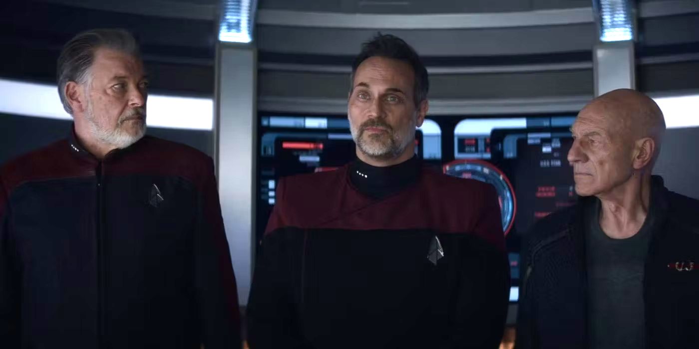 “/> Uno de los temas de discusión sobre El espectáculo del transbordador fue como Viaje a las estrellas: Picard El elenco de la temporada 3 tuvo la libertad de sugerir cambios de diálogo e improvisar, lo cual estaba prohibido en programas heredados como Star Trek: Empresa. En la serie Star Trek producida por Rick Berman, los actores tuvieron que pronunciar sus diálogos palabra por palabra. Pero Viaje a las estrellas: Picard El showrunner de la temporada 3, Terry Matalas, y su equipo creativo alentaron a los actores a participar en cómo se desarrollaron los arcos argumentales de sus personajes. Esto permitió una espontaneidad divertida en el set, como cuando Seven of Nine (Jeri Ryan) bromeó: “¡El robot tiene razón!” a Datos (Brent Spiner).