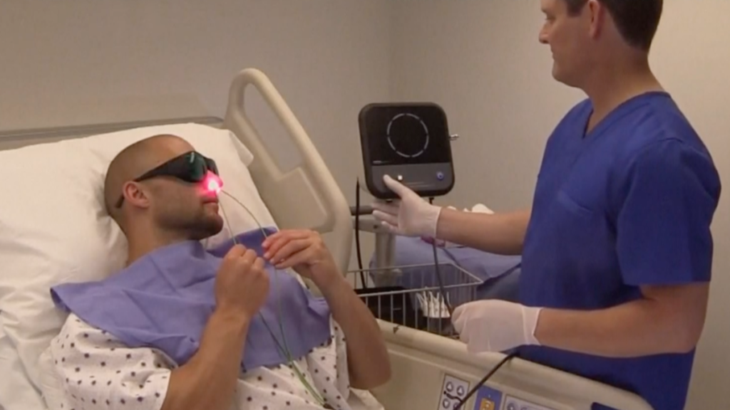 Durante el proceso se inserta una especie de guisopo con un compuesto químico dentro de la narIz, donde según estudios, el virus tiende a invadir, luego, utilizando ópticas de fibra se enciende una luz roja visible.