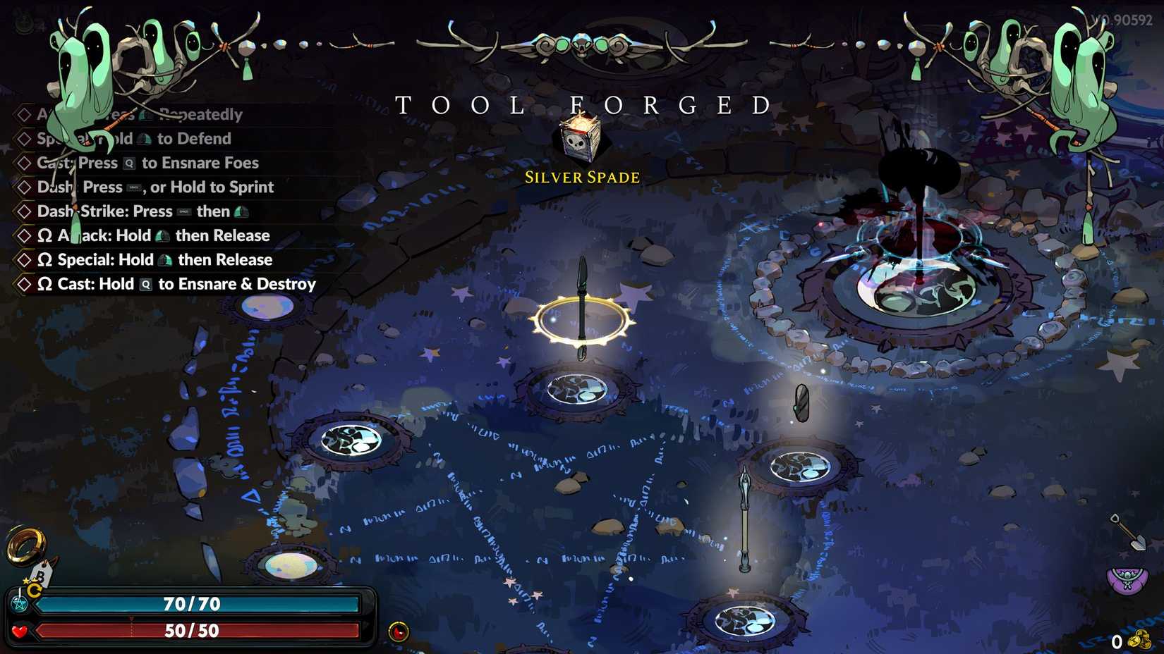 La Silver Spade es una herramienta esencial para recolectar semillas de espadaña. Primero debes desbloquear el encantamiento del trabajo nocturno para obtenerlo. Esto solo cuesta un Moly, por lo que probablemente lo obtendrás como tu primer encantamiento y desbloquea todas las herramientas y artesanías, incluida la pesca. A continuación, debes interactuar con el caldero Crossroads nuevamente para recibir el encantamiento de suelo floreciente.. Esto le permite a Melinoe cultivar semilleros en Crossroads para cultivar su propio encantamiento y mejorar materiales.