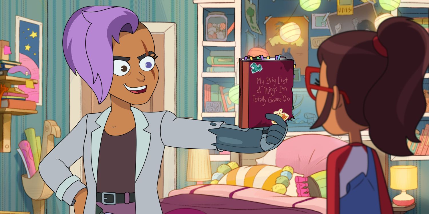 Devin Bunje: Funcionalmente, necesitábamos una forma de organizar y priorizar los elementos de la lista en el mundo sin tener que revisar siempre la lista física real y las cosas. Así que nos gustó la idea de conseguir un pequeño ayudante del futuro. La versión más lógica de eso, en nuestras mentes, fue: “¿Qué pasaría si fuera un teléfono inteligente súper avanzado?” Y una niña de 14 años querría hacerlo lindo y ponerlo en un cuerpo de osito. [Laughs] Pensamos que era una dinámica divertida. Y luego, por supuesto, darle al personaje una personalidad casi opuesta al cuerpo nos pareció divertido.