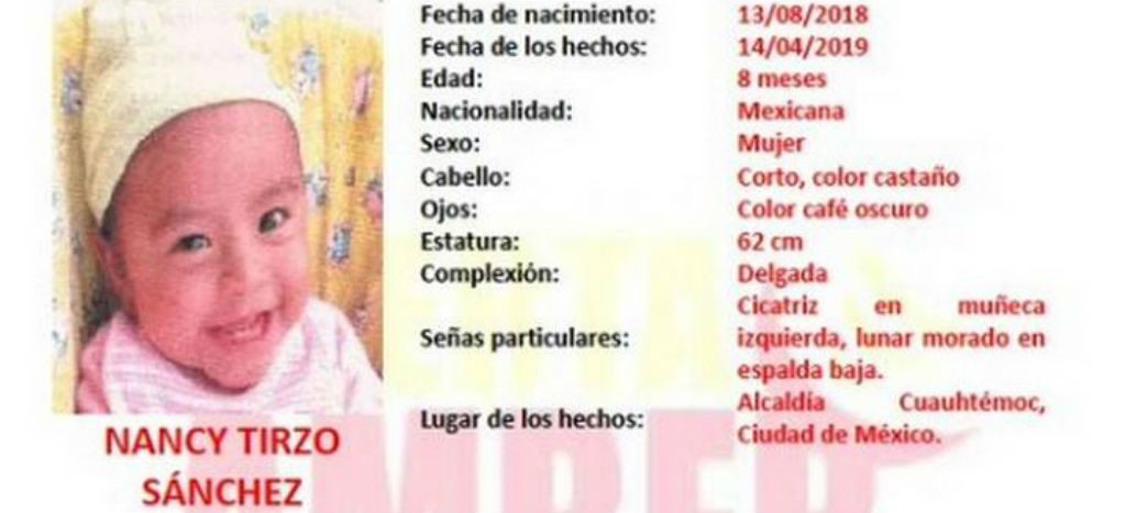 La bebé de 8 meses fue localizada en un domicilio de Ciudad Lago junto con dos personas; posteriormente Nancy fue entregada en las instalaciones de la Fiscalía del Menor de la Ciudad de México.