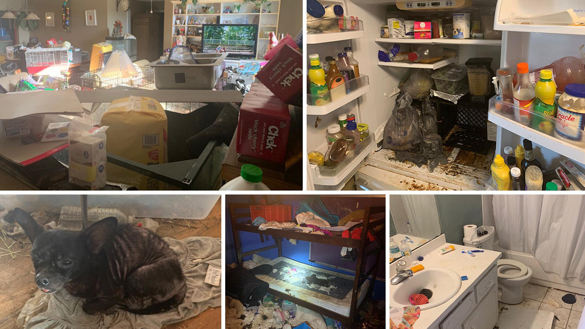 Los oficiales observaron a un guinea pig muerto en una jaula, comida podrida, heces de animales y orina en toda la residencia.