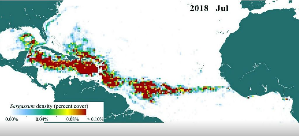 Antes del 2011, la mayoría de esta alga flotaba en parches cerca del Golfo de México y el Mar del Sargazo, en el Océano Atlántico, pero es probable que comenzara a arribar a las costas por el aumento de la deforestación y del uso de fertilizantes a partir de 2010.