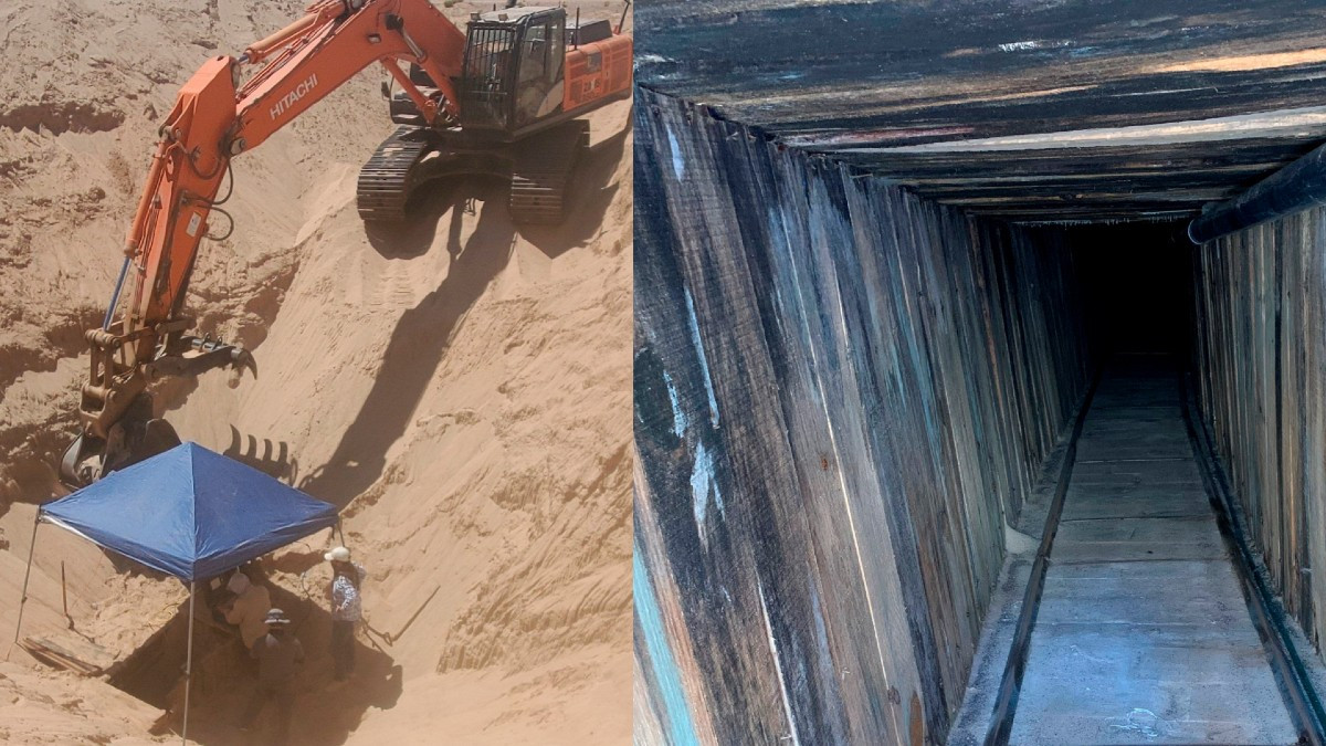 Poco después se descubrieron trozos de madera y mangueras de agua bajo tierra. Se desplegó una cámara especializada a 25 pies bajo tierra para investigar, que revelo el túnel transfronterizo.