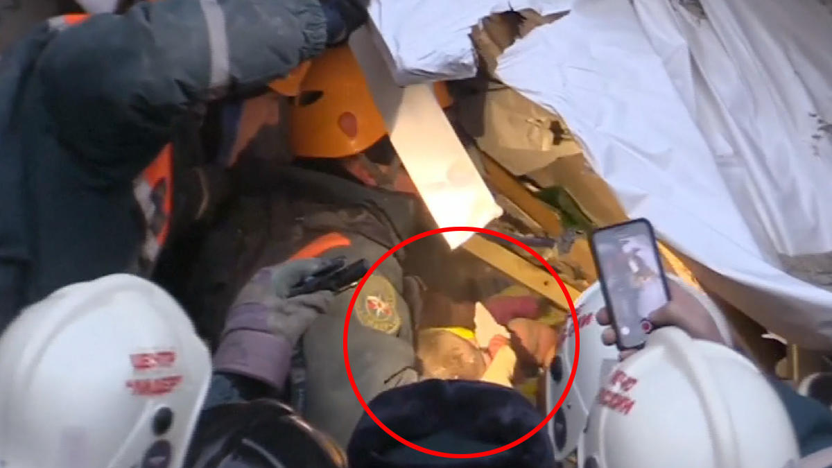Los equipos de rescate encontraron al bebé después de oír llantos entre los escombros. Una sección del edificio de 10 pisos en la ciudad de Magnitogorsk se desplomó el lunes tras una explosión que se cree que fue provocada por una fuga de gas natural.