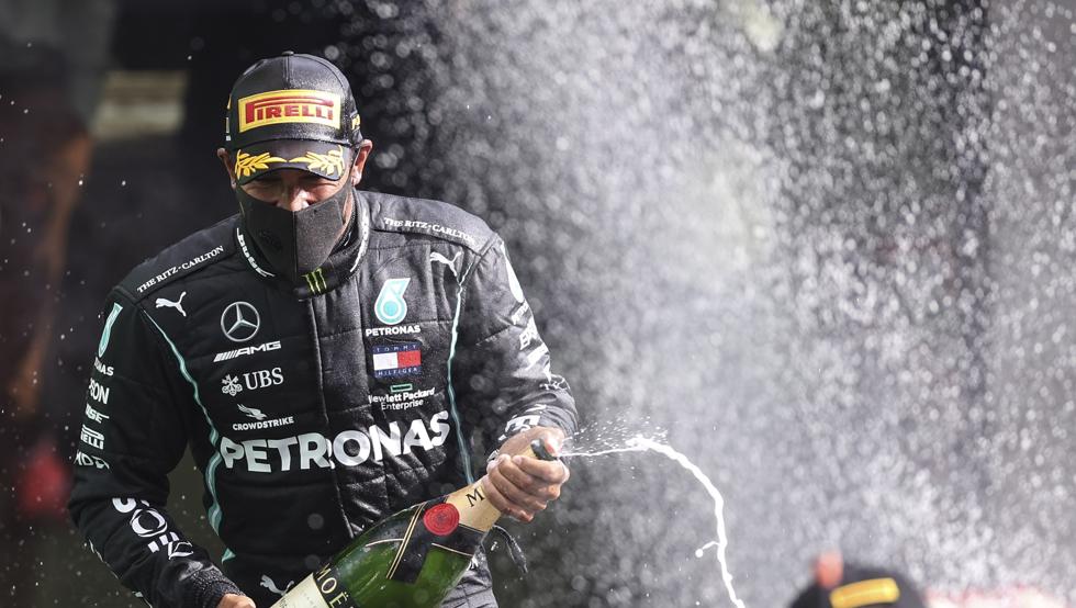 Un día después de elevar a 93 su propio récord histórico de ‘poles’, Hamilton lideró la carrera de principio a fin y ganó por delante de su compañero Valtteri Bottas -confirmando el séptimo año seguido de férreo dominio de Mercedes- y del holandés Max Verstappen (Red Bull), el único que les puede aguantar algo el tirón a las ‘flechas plateadas’. De negro este año, en contra del racismo.