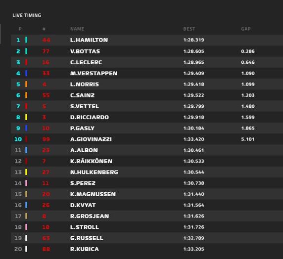 Valtteri Bottas fue más rápido durante todo el fin de semana. Aseguraba que no tiraba la toalla en la lucha por el campeonato. No bajaba la cabeza ante su jefe de filas, Lewis Hamilton, que en las anteriores tres carreras parecía haber acabado con su rebelión con tres victorias consecutivas. El inglés llegaba a Paul Ricard con 29 puntos de ventaja en la general y Bottas era consciente de que no podía fallar. Iba en la dirección adecuada para sumar una pole con la que meter presión al inglés. Pero en el momento clave, el pentacampeón sacó el martillo para poner las cosas en su lugar y superar a Bottas por 0”286 con un auténtico vueltón. Pole número 86 y nuevo récord de la pista para el inglés que se combina con un nuevo doblete para Mercedes, que no tuvo rival en el trazado francés ante unos Ferrari que nunca estuvieron a la altura de las ‘flechas de plata’ y que vieron como su líder, Sebastian Vettel, se hundía un poco más con una séptima plaza decepcionante.