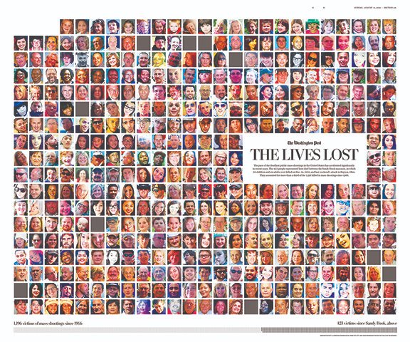 El diario The Washington Post enlistó los tiroteos que se han registrado desde 1966 en Estados Unidos; de acuerdo con el editor ejecutivo de TWP, Martin Baron, es un espacio dedicado a las víctimas, a sus familias y amigos.