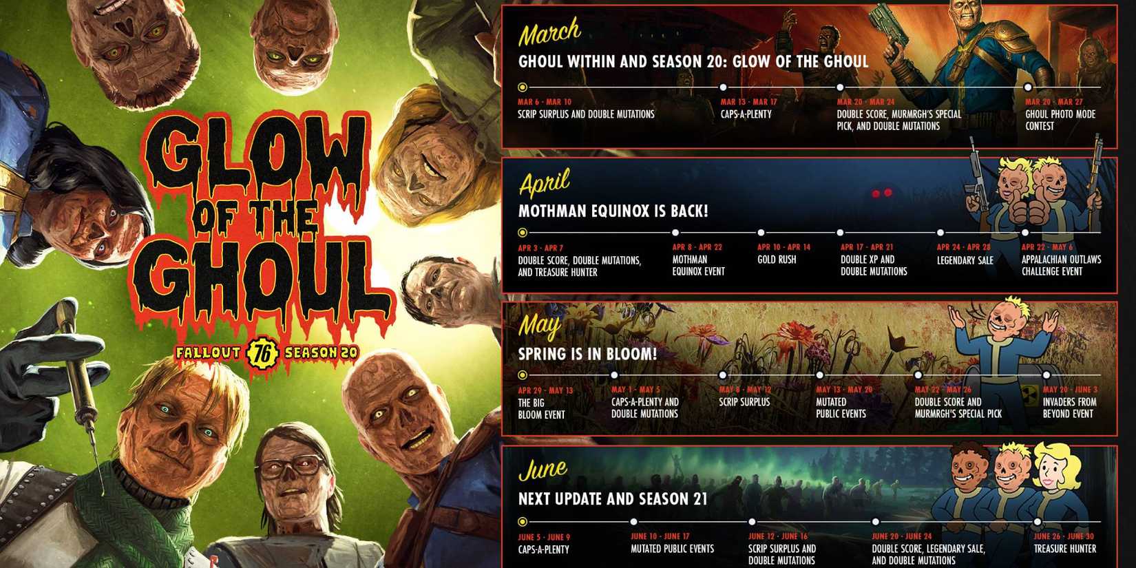 Fallout 76’s Última temporada, Brillo del ghoul – Lo cual es notablemente la temporada 20, algo que me desconcierta considerando que nunca pensé que duraría más de unos pocos años, finalmente está trayendo la característica de jugar como un ghoul. Esto viene meses después del enorme Valle del horizonte Actualización, que agregó una nueva región y más, aunque la perdí por completo. En tono rimbombante, junto con el anuncio del Valle del horizonte Actualización, Bethesda reveló que los jugadores podrían convertirse en ghouls a través del Ghoul dentro actualizar.