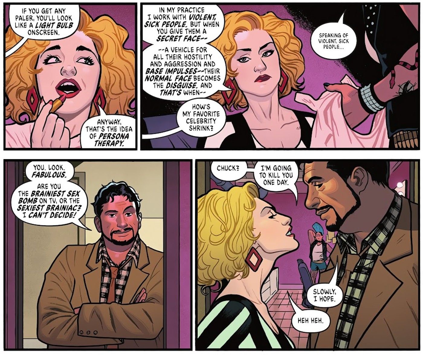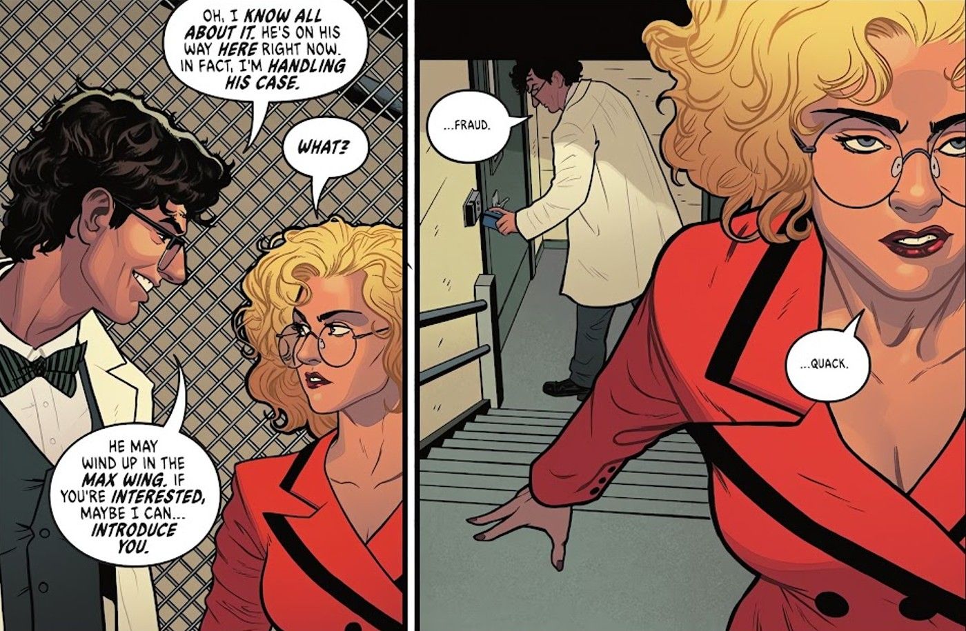 Lo que puede establecer la caída de Harley y convertirse en uno de los villanos más nuevos del Burtonverse es su relación con Scarecrow, que se establece en el primer número. Quinzel y Jonathan Crane claramente ya se conocen, ya que tienen una breve discusión sobre el villano Firefly (y luego cada uno murmura un insulto sobre el otro en voz baja). Crane claramente tiene algo en contra de Quinzel. Para perfeccionar sus toxinas, los fanáticos no deberían pasar por alto la posibilidad de secuestrar a Quinzel y obligarla a ser un sujeto de prueba para su último lote.