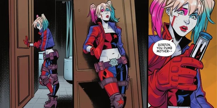 Pero, que todos los cambios en DC vs Vampiros: Asesinos #1 de Matthew Rosenberg, Mike Bowden y Eduardo Mello. En esta historia, Ciudad Gótica está en medio de un apocalipsis vampírico y el teniente Gordon reúne un frasco de sangre de Lex Luthor (previamente establecido en la serie para ser un asesino instantáneo de vampiros). Sin otras opciones adecuadas, lo pone en manos de Harley Quinn. Antes de que (presuntamente) lo mataran fuera del panel, Gordon le pide a Harley que se lo lleve a alguien que lo entienda porque es la clave para salvar a la humanidad. A pesar de decirle a Gordon, “Eso realmente no es lo que hago” Gordon se lo mete en el bolsillo. Después de convencerse de que salvar el mundo suena “un poco agradable” Harley toma el movimiento arriesgado de tragar el contenido del vial, infundiendo la sangre de Lex con la de ella para protegerlo aún más. Este es, con mucho, el acto más heroico al que se ha comprometido Harley Quinn en su reciente serie de cómics.