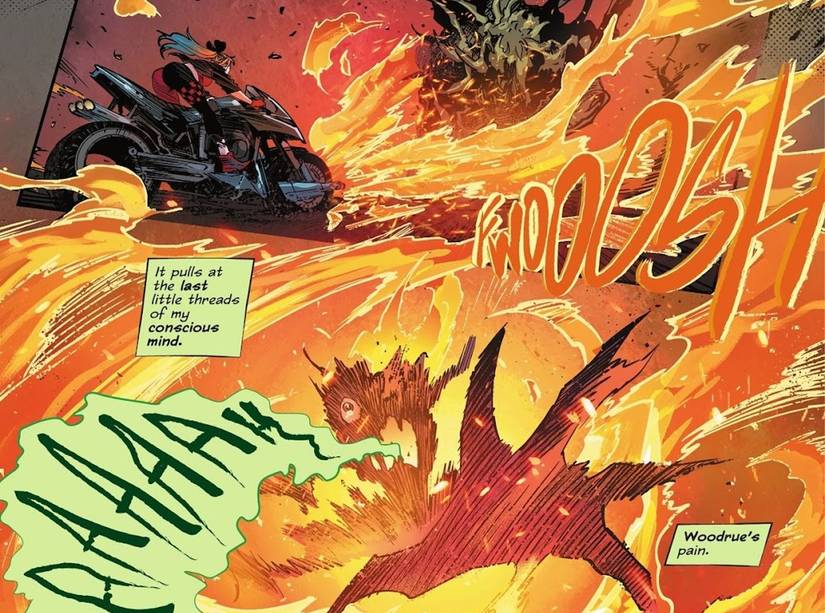 Es comprensible que Janet esté devastada y, por supuesto, todavía en peligro y en riesgo de morir debido a la negligencia de Harley. Croc intenta consolar a Janet. Segundos antes de abandonarla para ayudar a Grundy, Croc le recuerda que Harley “No eres un héroe; ninguno de nosotros lo es. Ella salvará a quien ama. Todo lo demás viene en segundo plano”. Como si no fuera suficientemente malo que Harley Quinn se niegue a ayudar a un ciudadano en apuros, más tarde procede a usar el lanzallamas de la Batbike de Jason Todd para quemar Woodrue hasta convertirla en hollín.