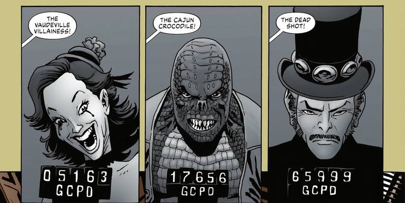 Con un aspecto más acorde con el de un payaso de circo o arlequín tradicional que con el disfraz de bufón un poco más teatral que suele llevar Harley, la piel blanca de la villana del vodevil, el rímel chorreante, la amplia sonrisa y el elegante sombrero venden bien este aspecto alternativo de Harley, mientras que la cara de cocodrilo más parecida a la humana de Killer Croc le da a este villano de inspiración cajún un rostro que aterroriza. Para no quedarse atrás, Dead Shot tiene notablemente el rediseño más diferente de estos personajes, ya que Floyd Lawton no lleva su habitual atuendo táctico y, en su lugar, tiene un sombrero de copa y un rostro con bigote similar al de su predecesor.