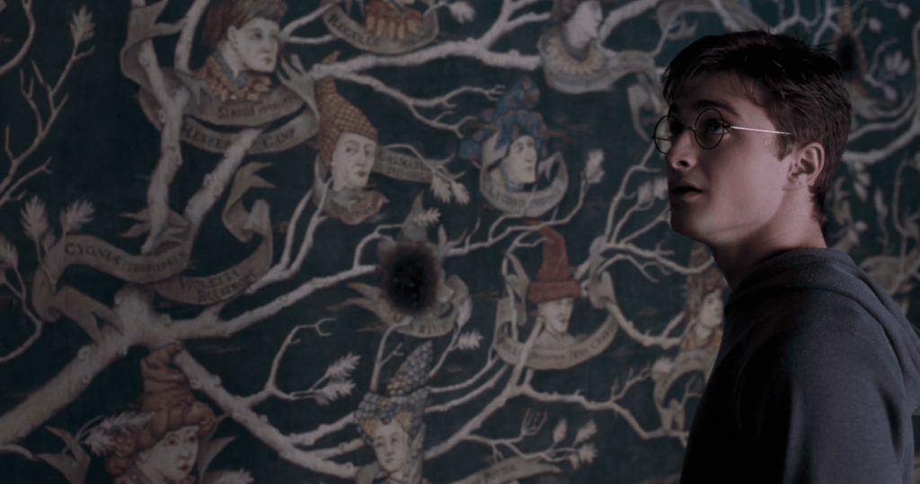 En Harry Potter y la Orden del Fénix, Sirius le muestra a Harry el árbol genealógico negro, que ocupa una pared entera dentro de Grimmauld Place.